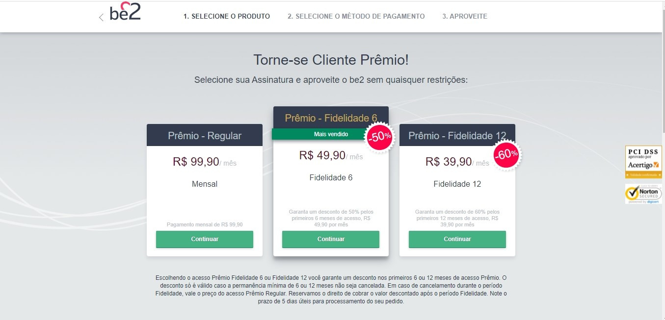 Para uma assinatura Premium, o Be2 propõe 3 tarifas :