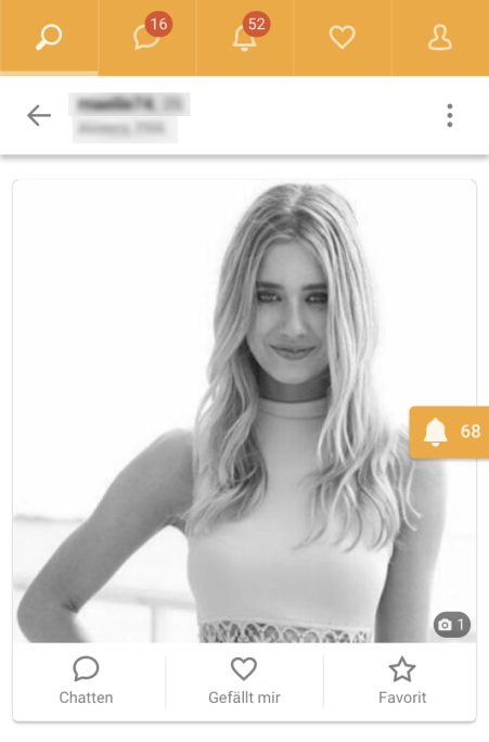 Die "Gefällt mir-Galerie" ist wesentlich mehr als eine Galerie der bevorzugten Profile. Hier findet man auch ein Profile-Karussell mit Bildern, mit dem neue Mitglieder gefunden werden für neue Kontakte. Klicken Sie auf das Kreuz oder das Herz, um neue angezeigt zu bekommen. Wenn man auf ein Herz klickt, wird das Mitglied benachrichtig, wodurch das Eis schnell gebrochen wird. Darunter sind zwei Kategorien zu sehen: „Treffer“ und „Likes“. Mit diesen ist es möglich, zu sehen, wer Ihr Profil mag und wen Sie geliked haben, damit Sie den Kontakt aufnehmen können.
