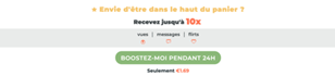 Vous avez aussi la possibilité de mettre votre profil en avant pour 24 h afin de faire davantage de rencontres. Pour cela, il vous faudra dépenser la modique somme de 1,69 €.
