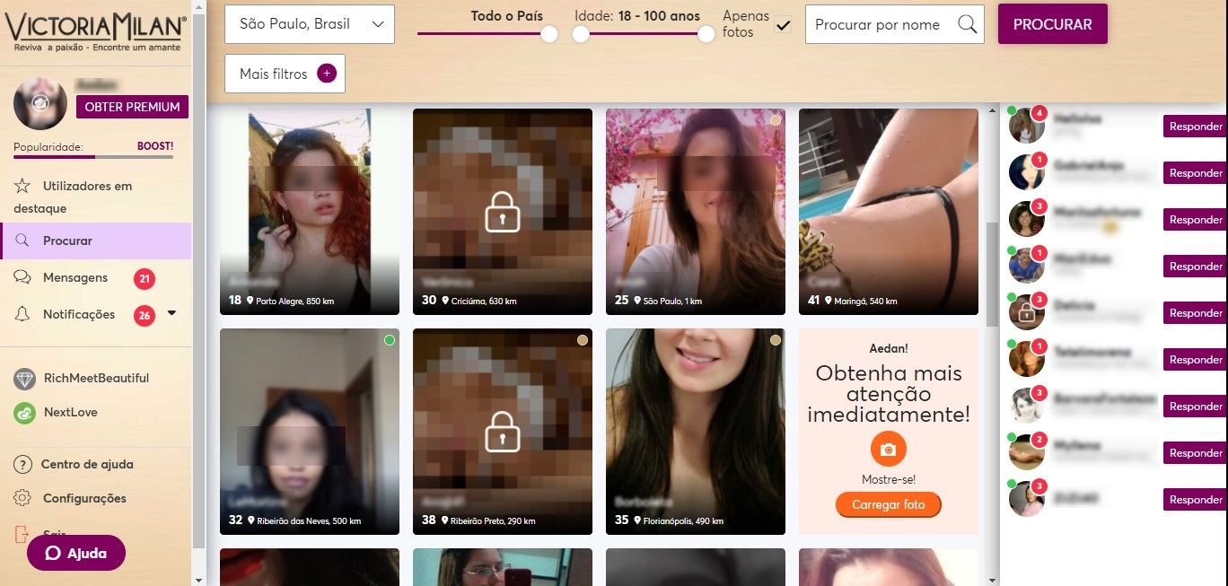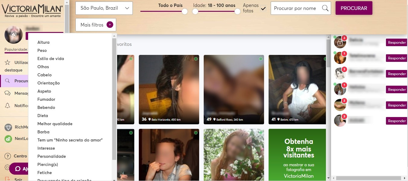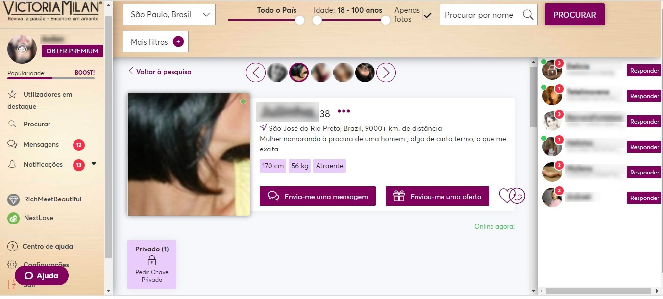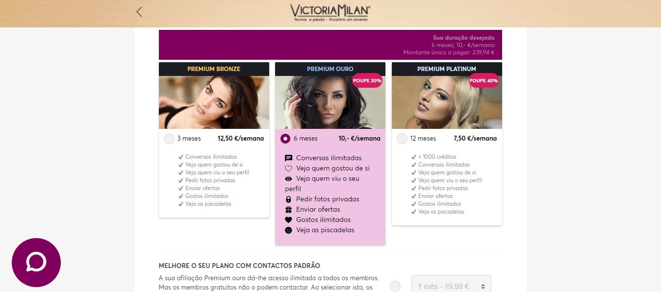 No Victoria Milan, a inscrição é gratuita, mas a assinatura premium é obrigatória para :